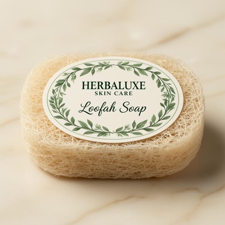 Herbaluxe Loofah Soap gently exfoliates the skin using natural loofah fibers to remove dead skin cells and rough patches