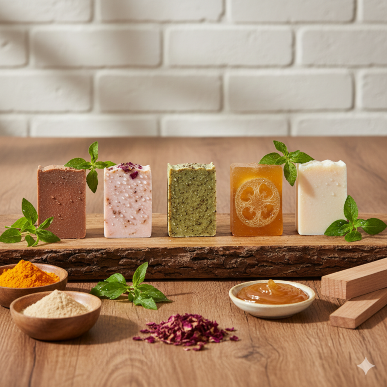 A gentle herbal soap enriched with pure sandalwood and turmeric to cleanse, soothe, and restore natural skin glow.