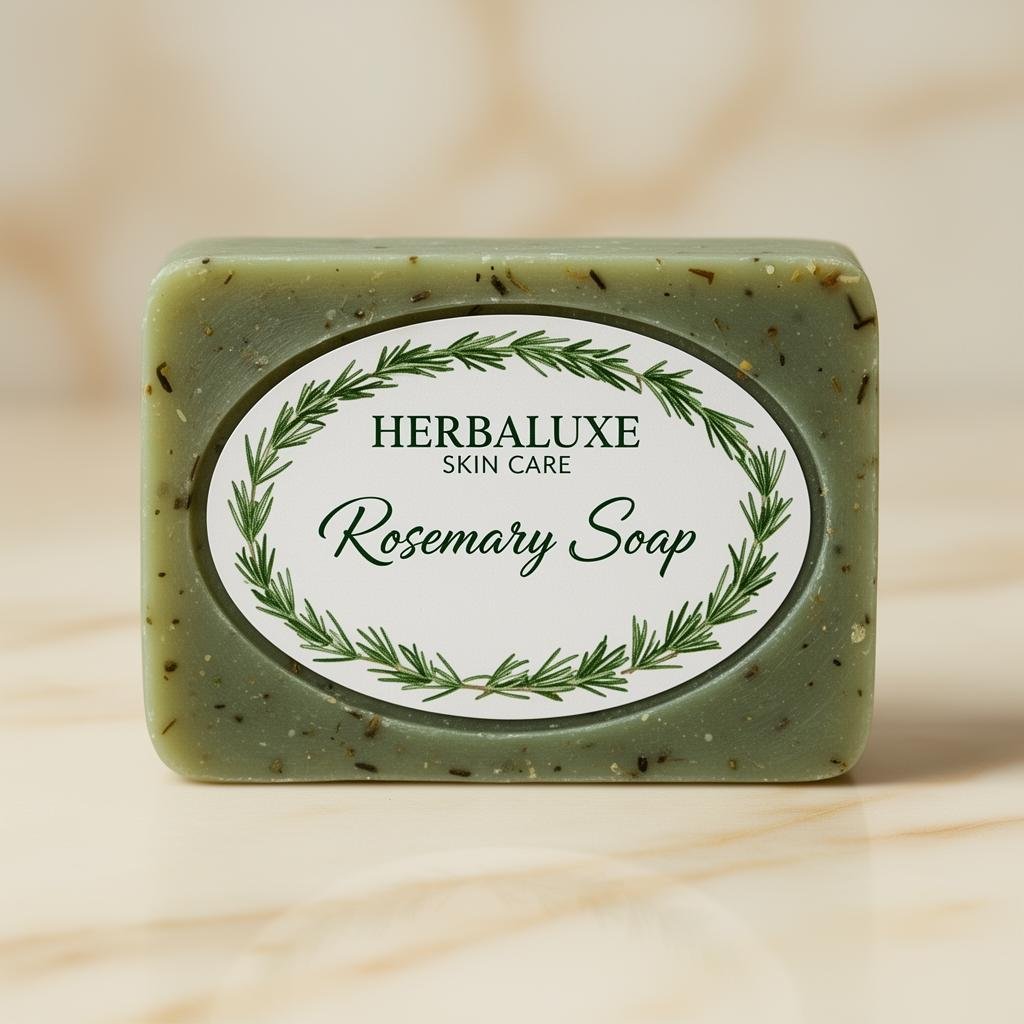 HERBALUXE Rosemary Soap is crafted for oily and acne-prone skin using rosemary herb and tea tree oil.